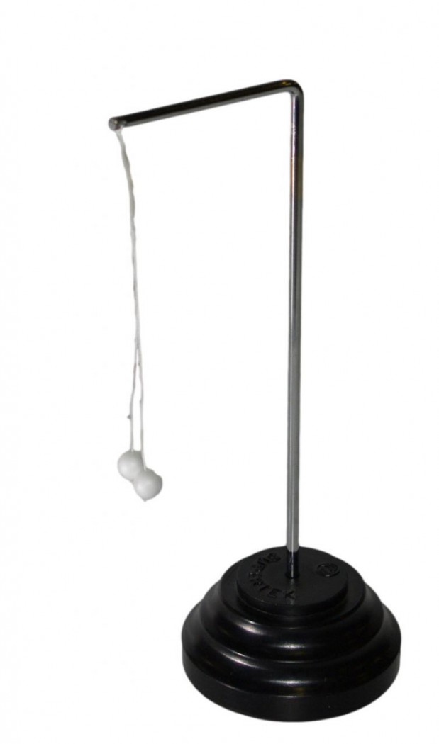 Маятник состоит из 2 пробковых шариков, подвешенных на свободном нитяном подвесе к металлическому Г-образному стержню, установленному на массивной подставке.