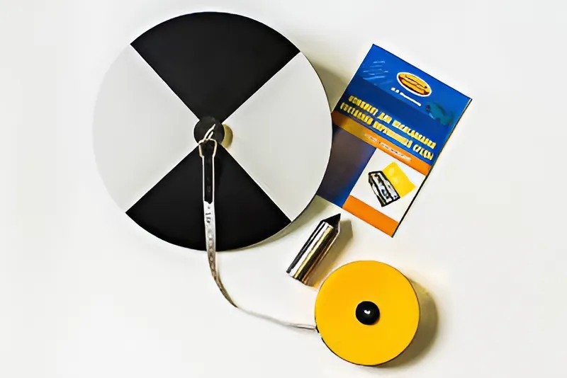 Прибор представляет собой черно-белый диск диаметром 30 см, соединенный с сантиметровой шкалой.