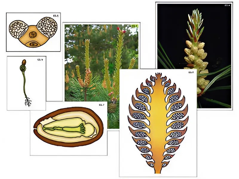 Пособие включает 9 карточек, иллюстрирующих особенности строения и размножения сосны. Карточки ламинированы матовой (антибликовой) пленкой и снабжены магнитными креплениями, что позволяет монтировать схемы на магнитной доске или экране для динамических пособий.