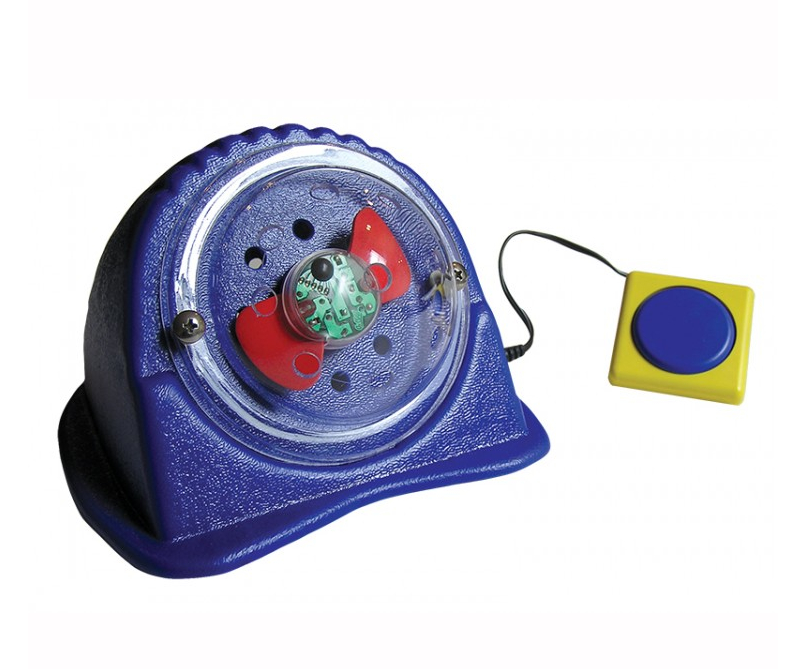 Соедините внешний переключатель с игрушкой. Нажмите на кнопку переключателя, и под куполом игрушки начнут появляться и вращаться разноцветные огни. Интенсивность появления и вращения огней зависит от силы нажатия на переключатель.