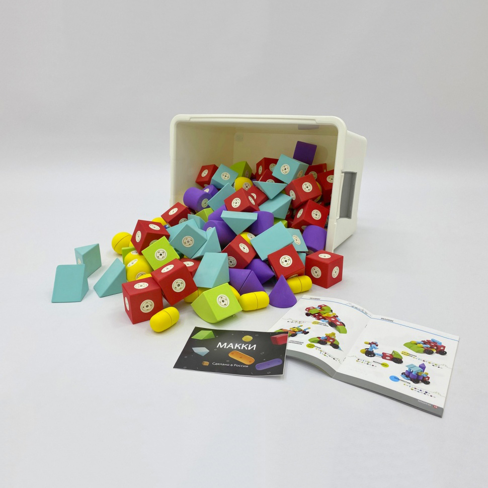 Конструктор «МАККИ Гигант» — набор цветных магнитных деталей (крупных геометрических фигур с магнитными креплениями), рассчитанный на целую группу ДС, так как в комплекте 240 деталей.