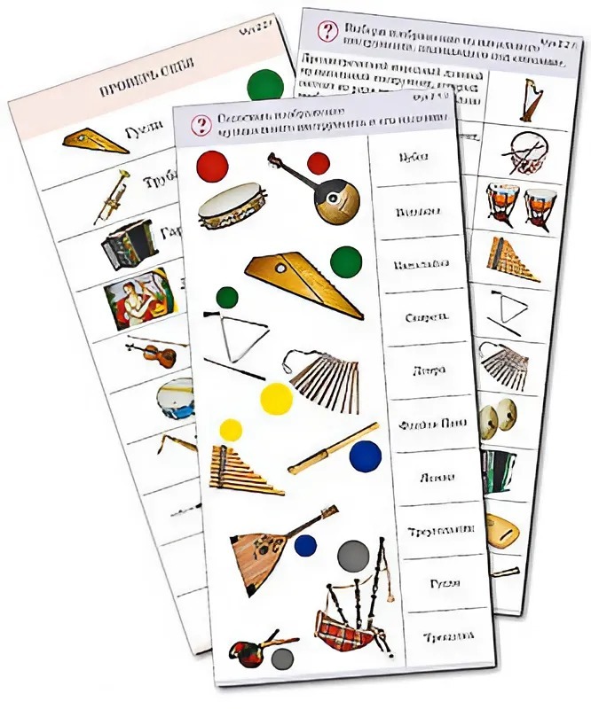 Комплект карточек (10) "Обучающий калейдоскоп. Музыкальные инструменты"