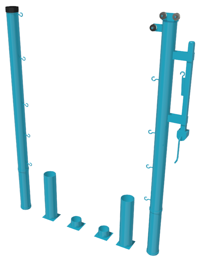 Стойки устанавливаются в закладные стаканы и вынимаются из них при необходимости освобождения площадки. Стаканы закрываются крышками.
